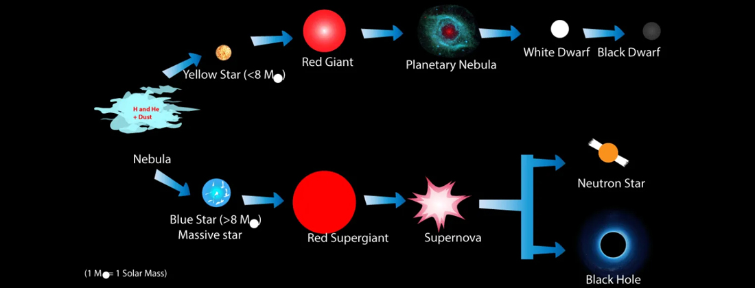 Black holes come in many different sizes. many of them are only a few times more massive than the Sun. These 'stellar-mass' black holes form when a heavyweight star, about 10 times heavier than the sun, ends its life in a supernova explosion. What is left of the star -still several solar masses - collapses into an area only a few kilometers across.